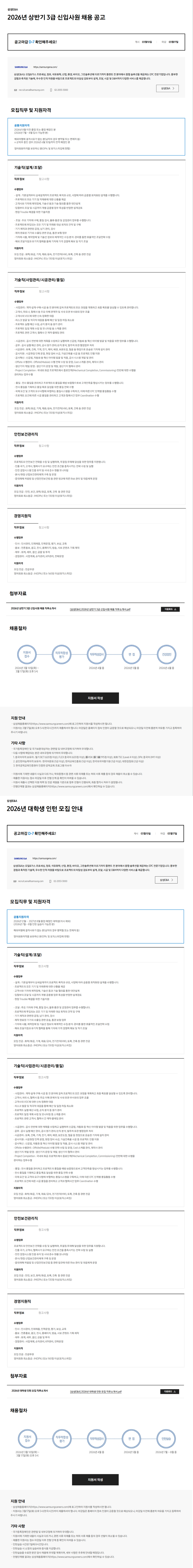 [삼성E&A] 2026 상반기 삼성E&A 3급 신입사원 채용/대학생 인턴 모집 (~3/17(화) 17:00)