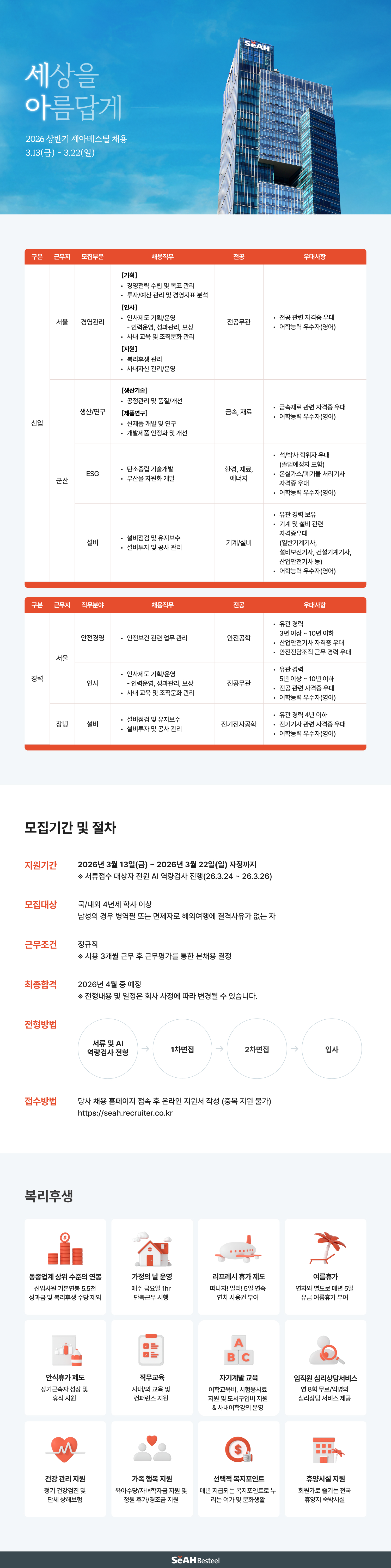 2026 상반기 세아베스틸 신입/경력 채용 (~3/22)
