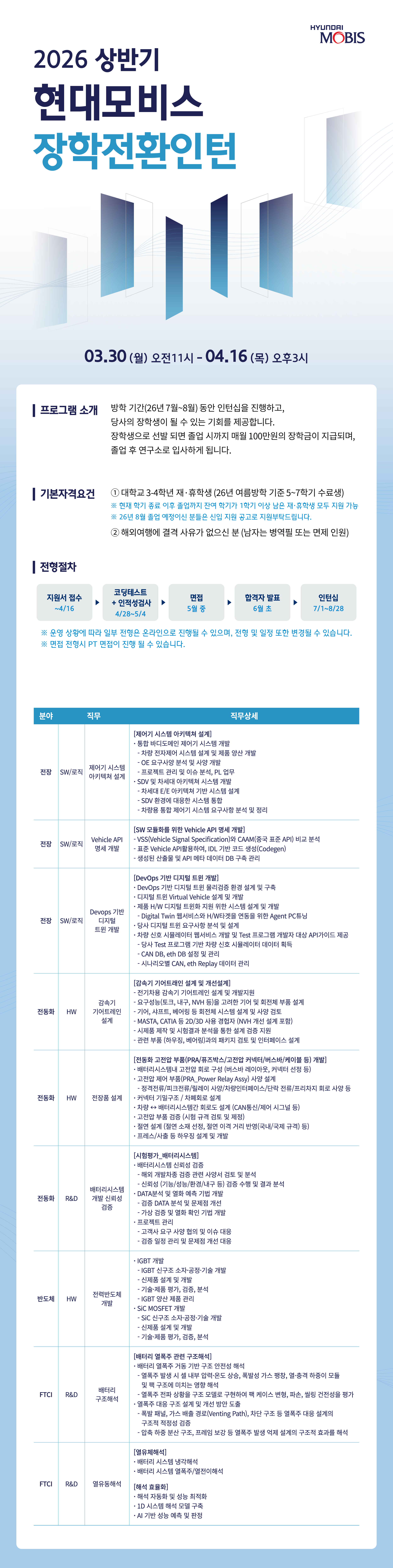 [현대모비스] 26년 상반기 장학전환인턴 모집(~4.16.(목) 오후 3시)